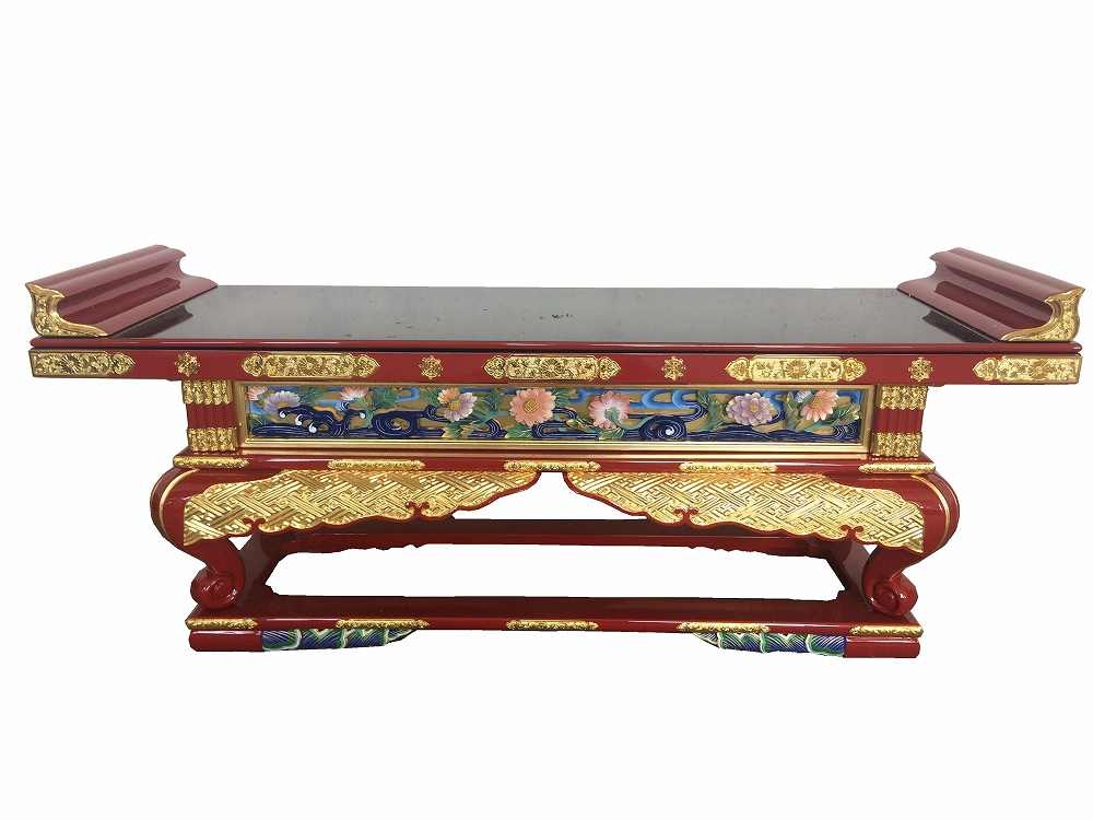 浄土真宗(西)脇壇卓(通彫)【朱塗】