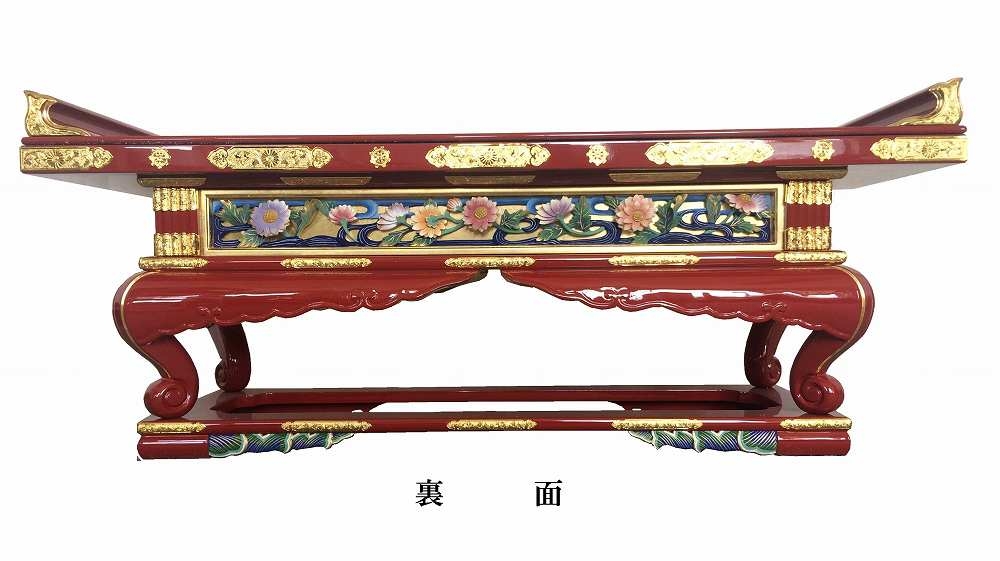 朱塗の脇壇卓(通彫)を設置される場合は総金箔の脇壇卓(三間)が対になります