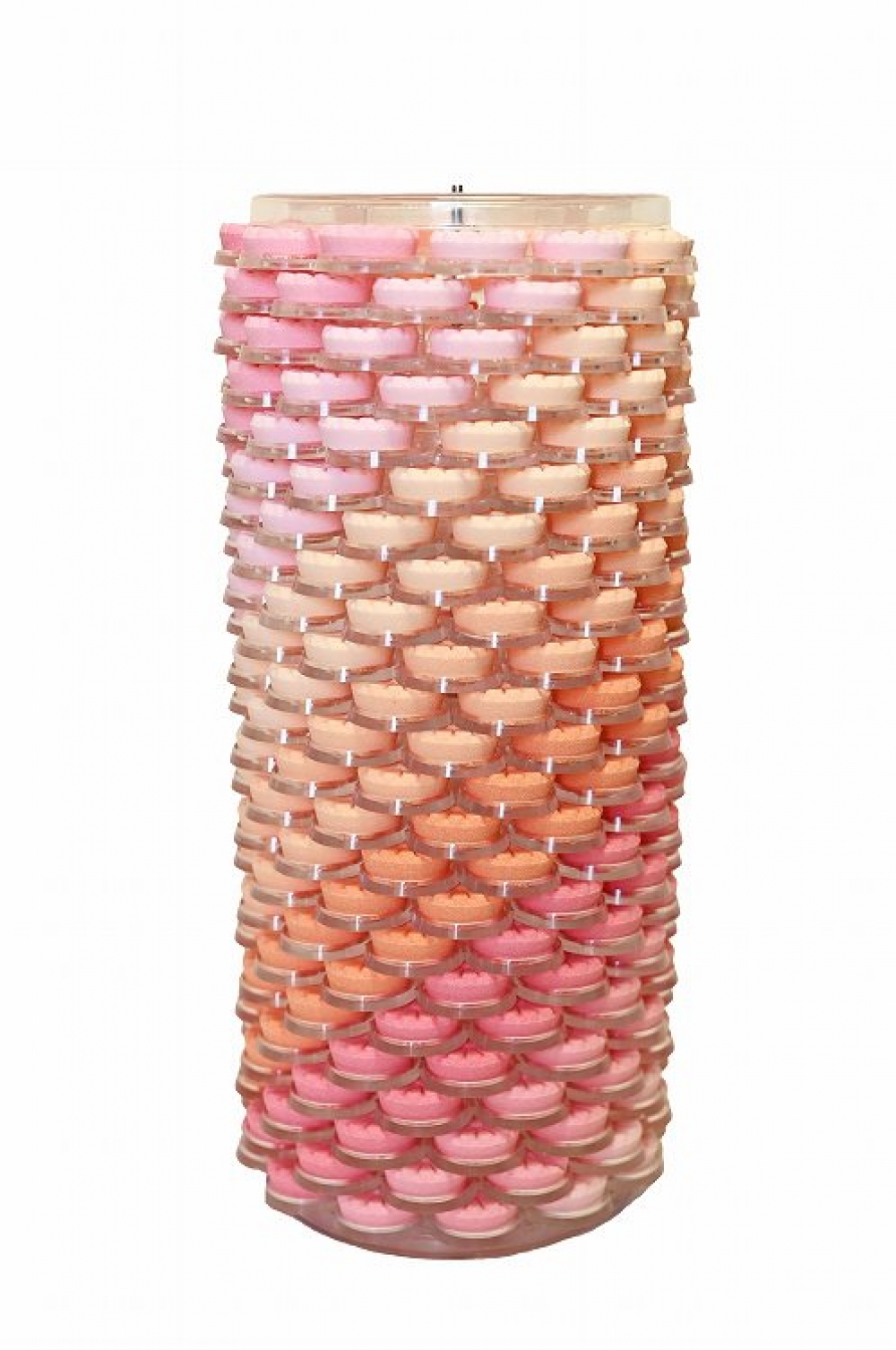 プラスチック製の器具を使って積み上げています