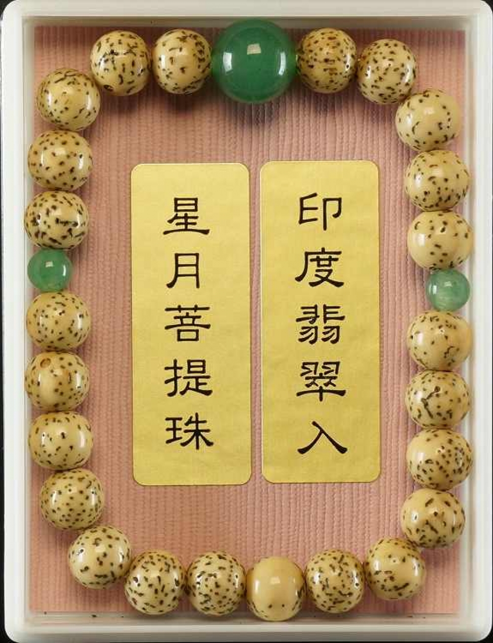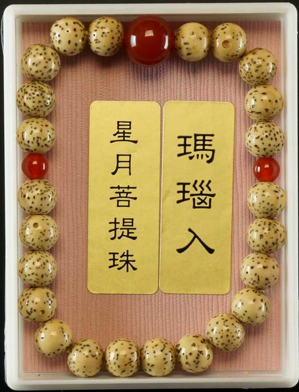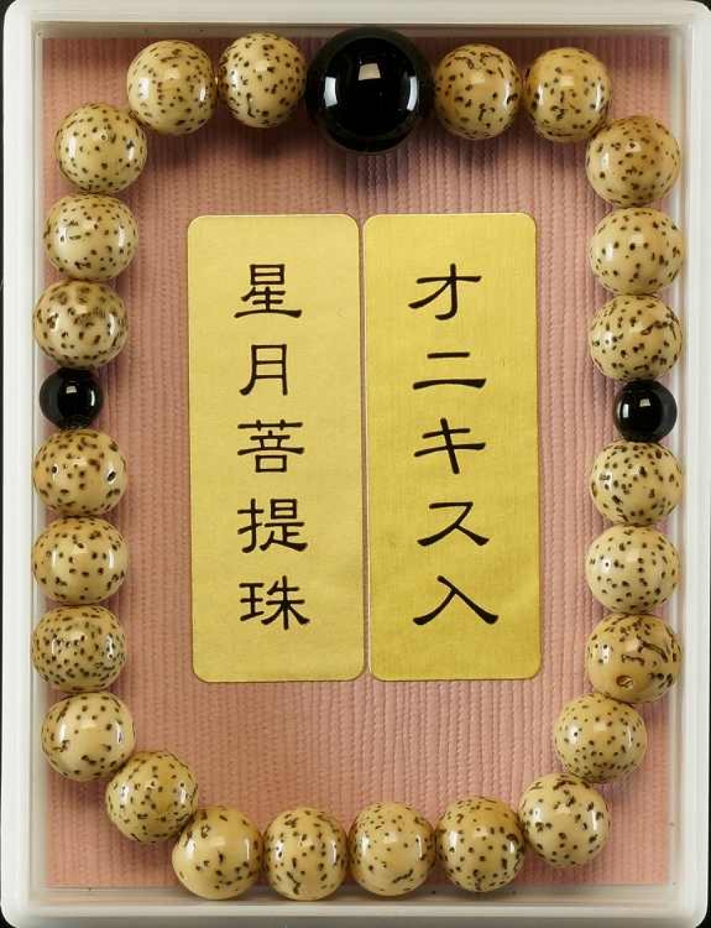 星月菩提樹の数珠ブレスに親玉と二天を各石で仕上げました プラスチックケース入り 1連