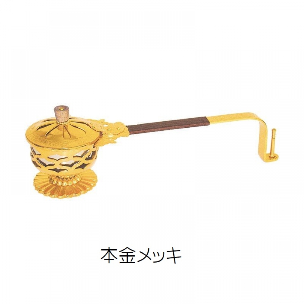 透かし入り柄香炉 真鍮製 平柄