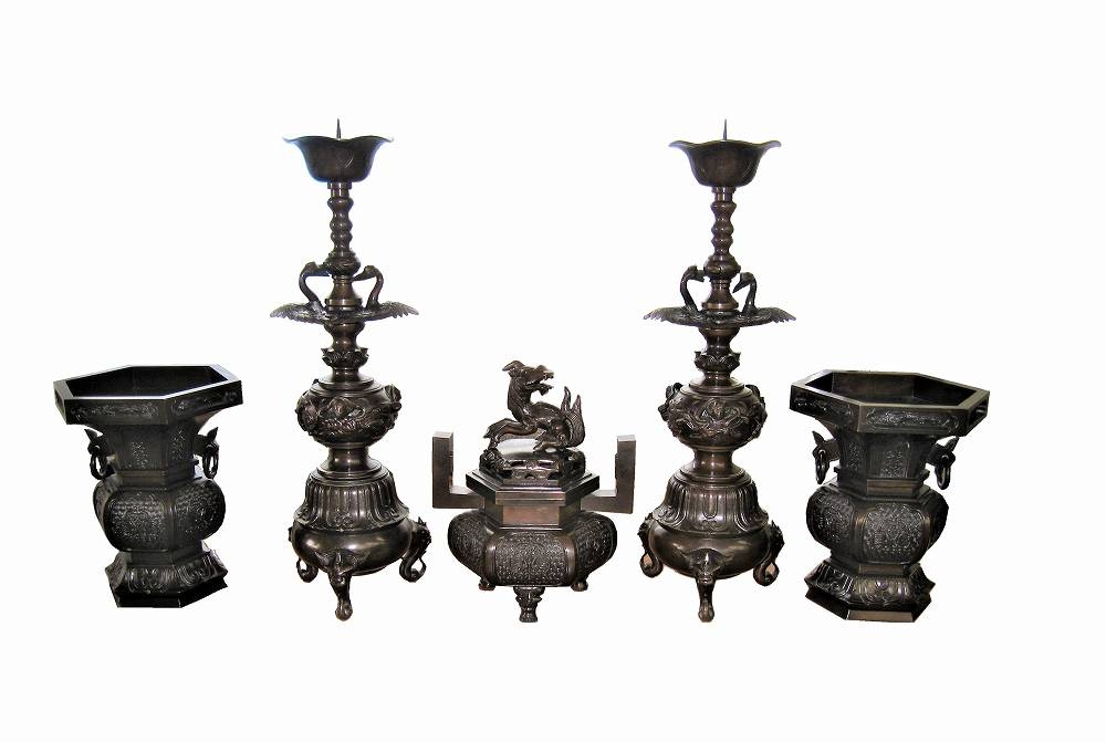 五具足 六角型 真鍮製・漆着色(黒色)仕上げ 一段