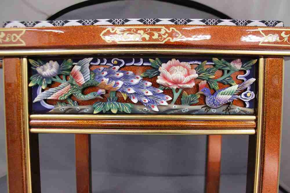 総梨地 蒔絵金具 極彩色彫刻入り 畳付 1脚