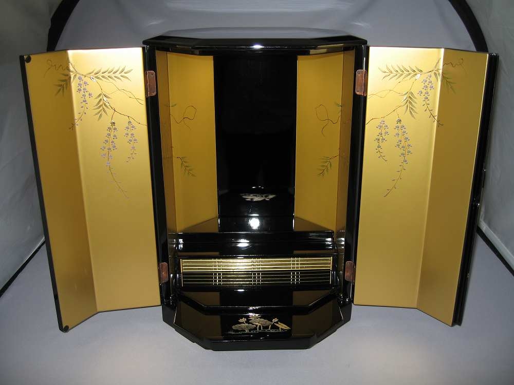 黒塗 雨戸・内部に手描き蒔絵入り (蒔絵の柄はかわることがございます)