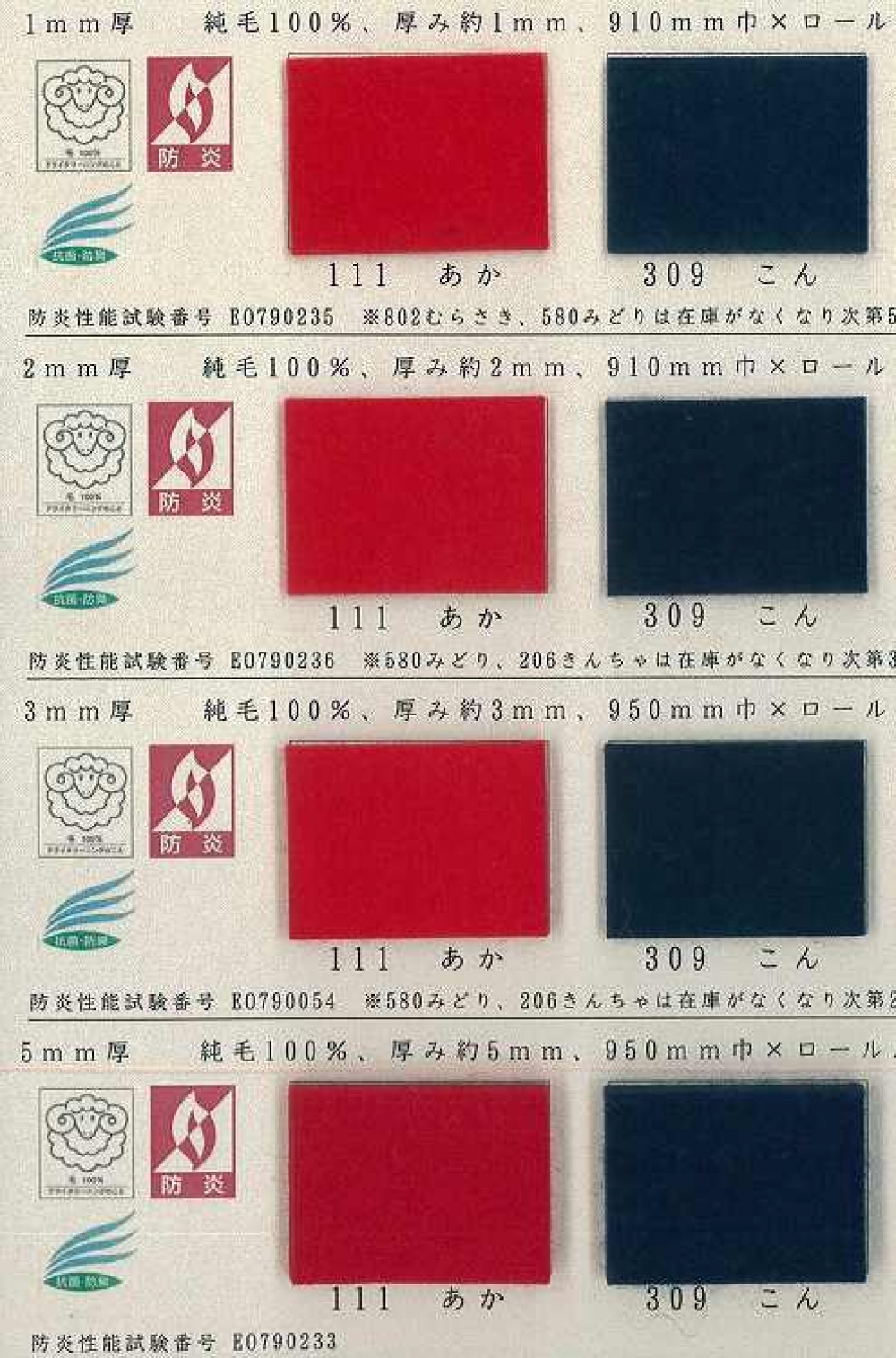 萬葉毛氈 ウール100% 防炎製品